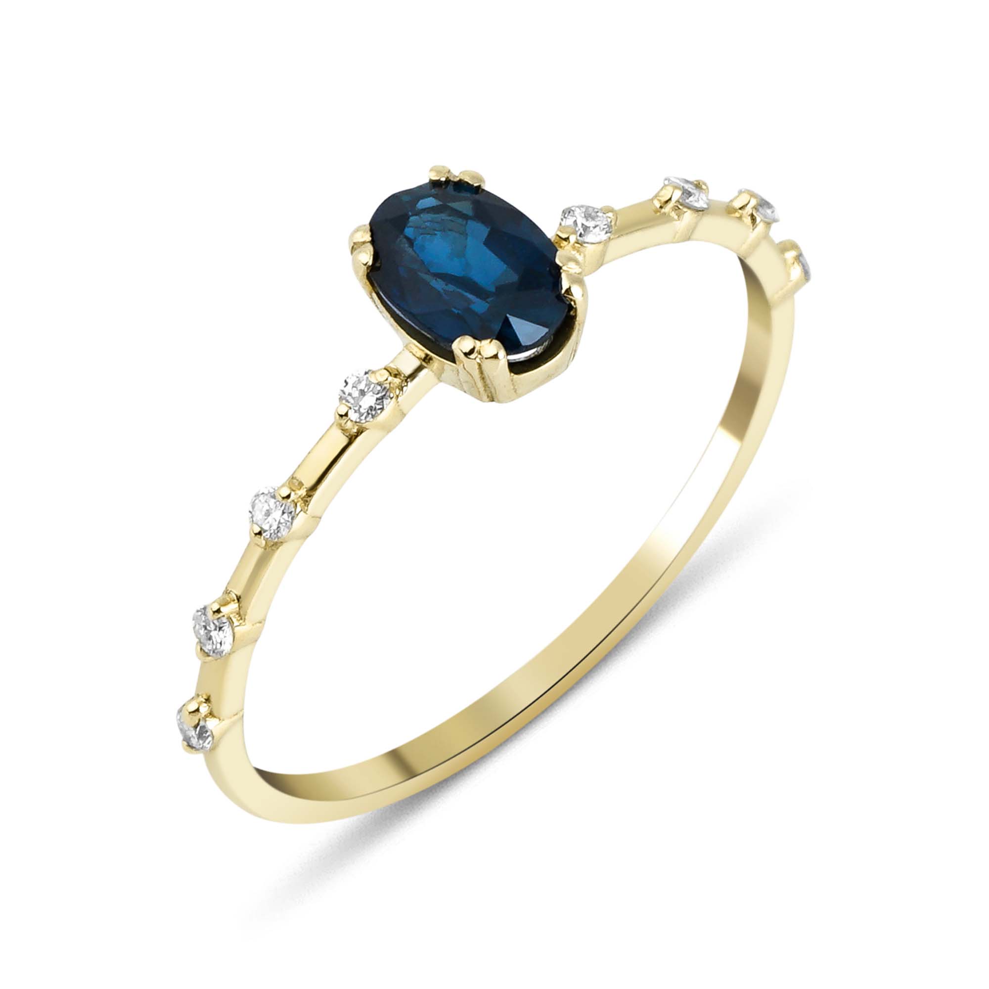 14k Oval Sapphire and Round Diamond Ring | XR0396