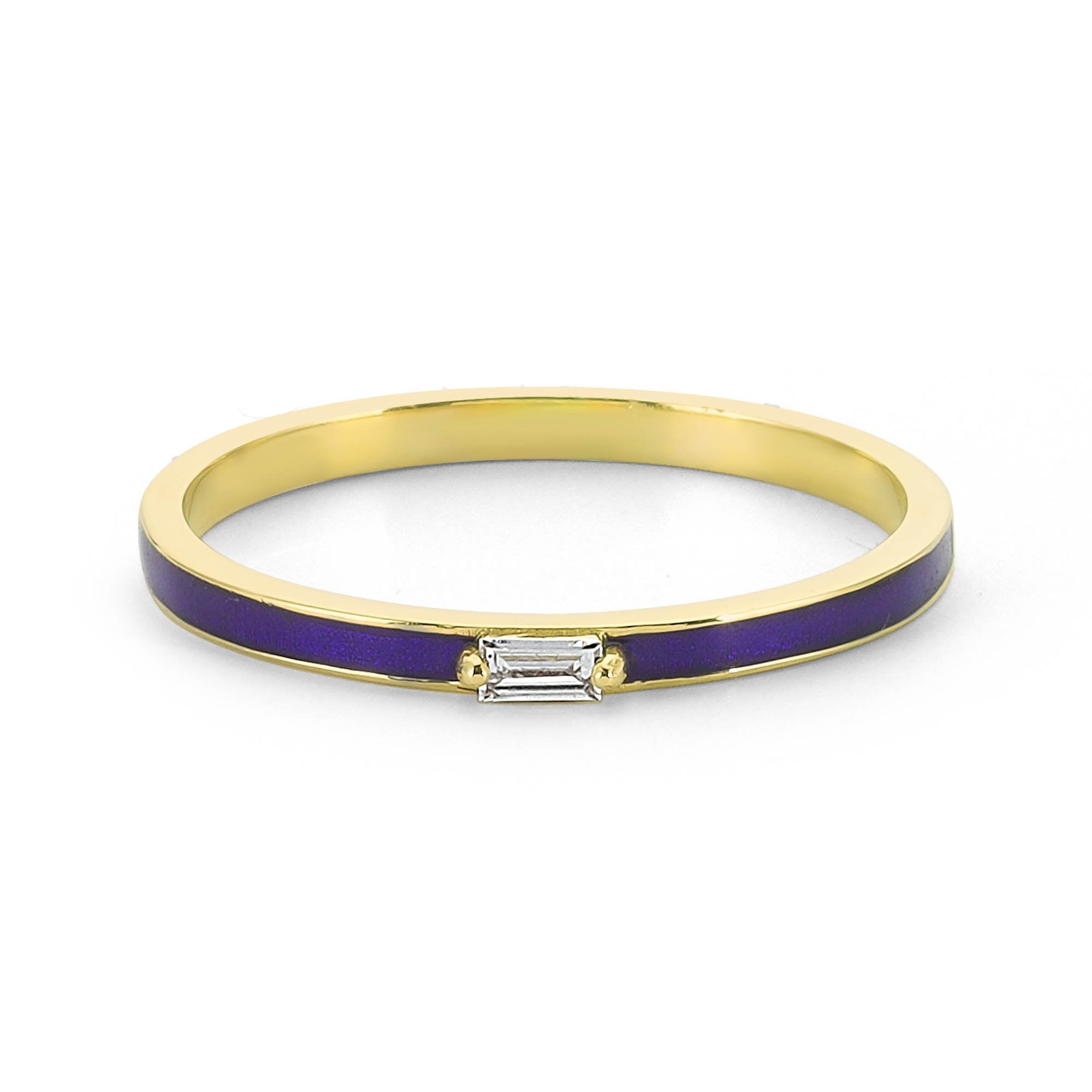 Baguette Diamond Navy Blue Color Enamel Ring | X21
