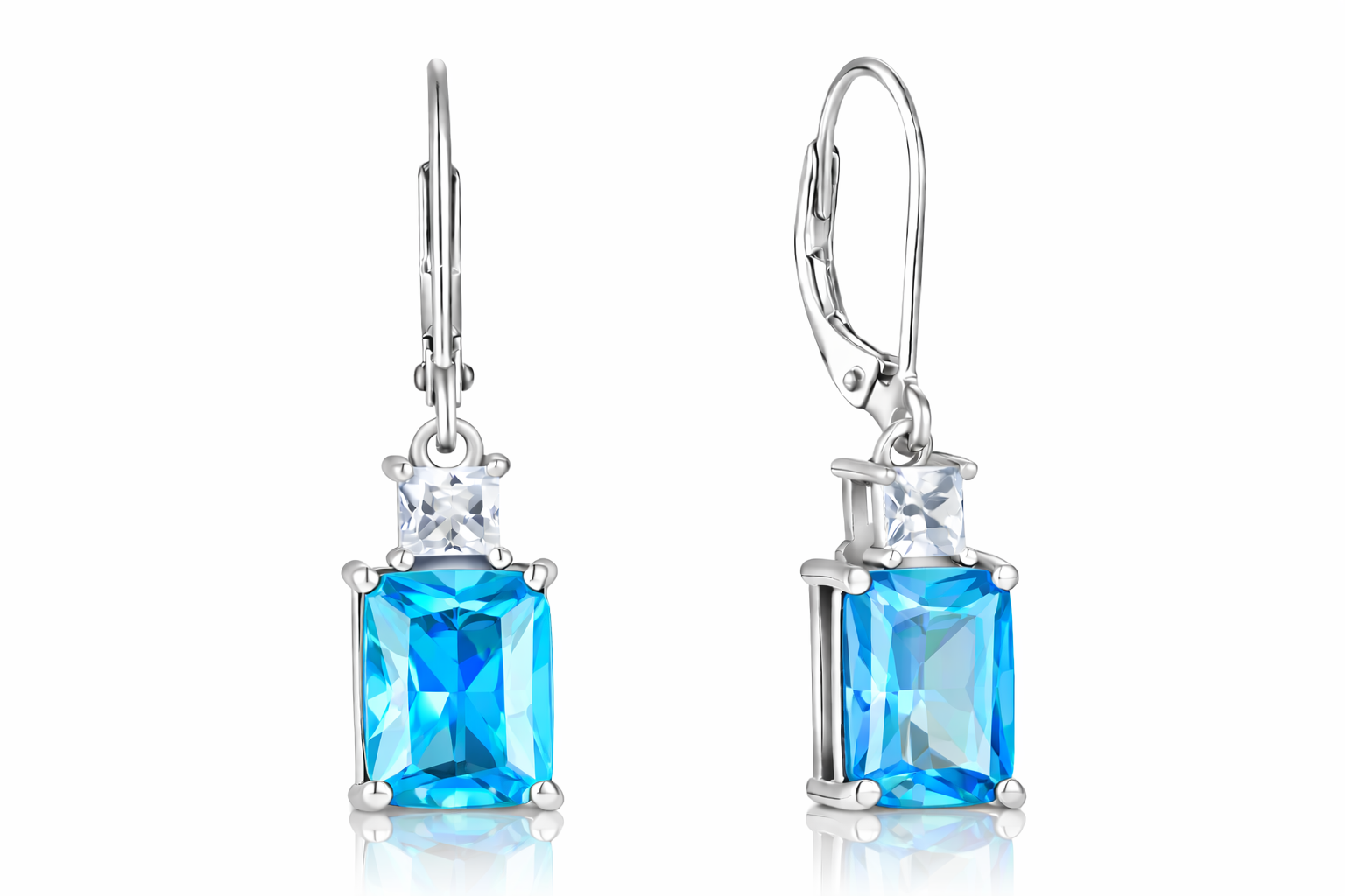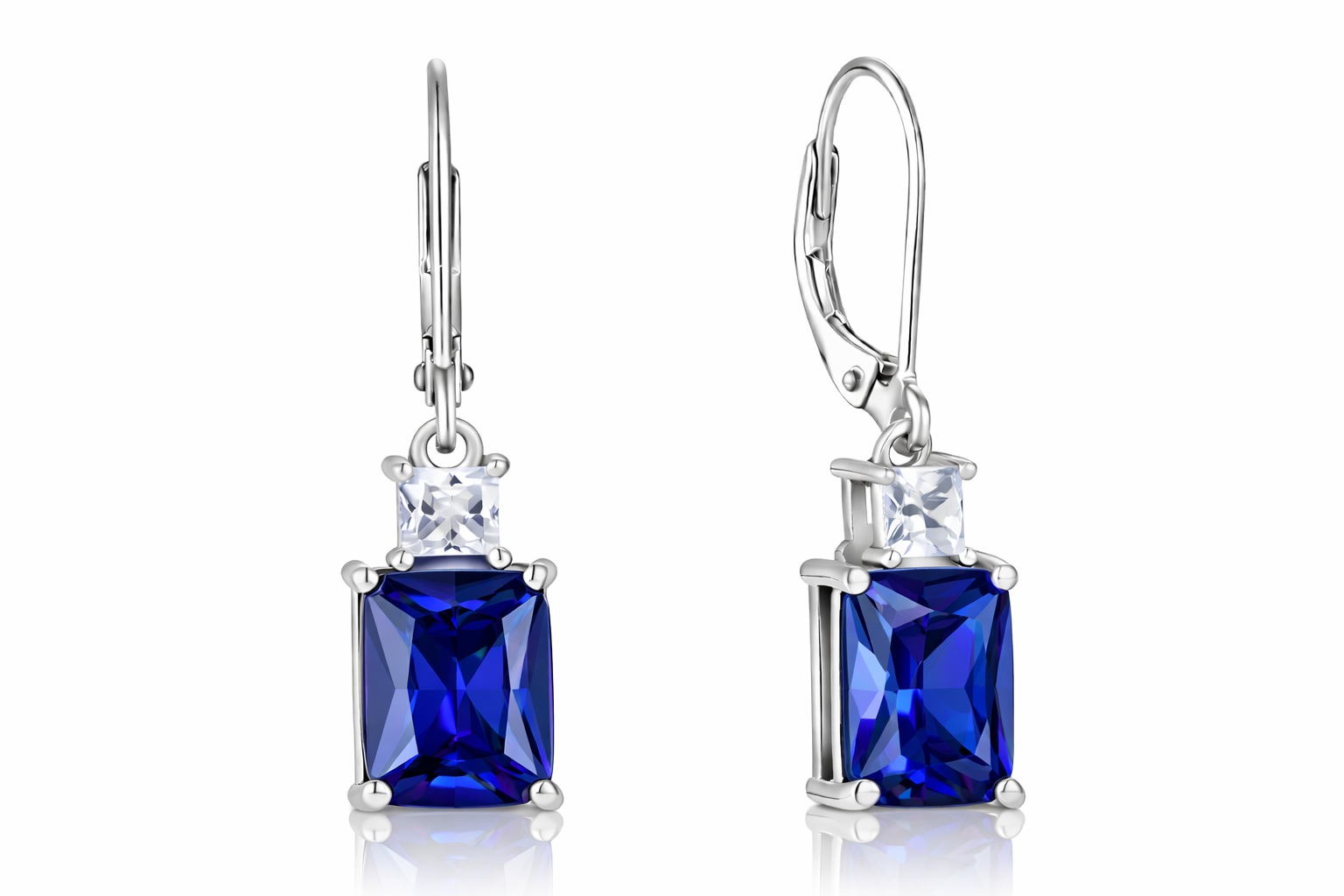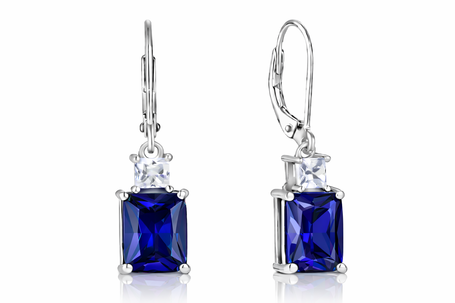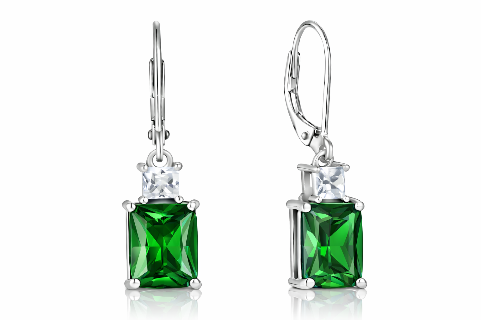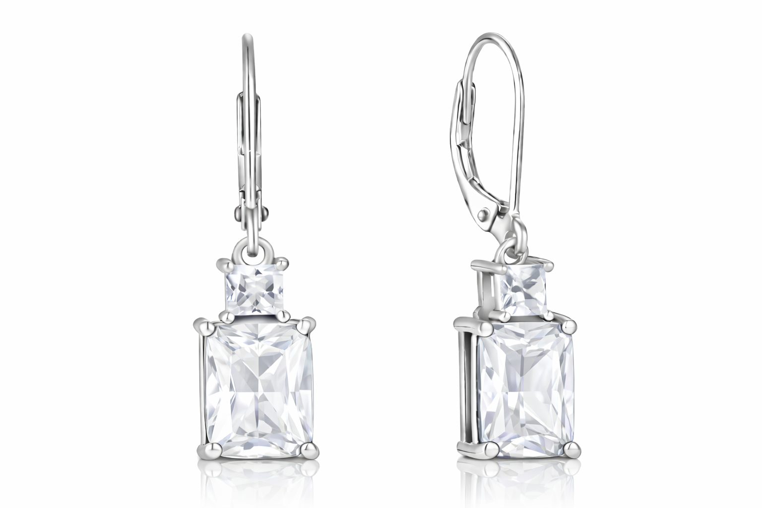 Sterling Silver Emerald Cut Drop Earrings with Cubic Zirconia,Nida Jewelers | DP002