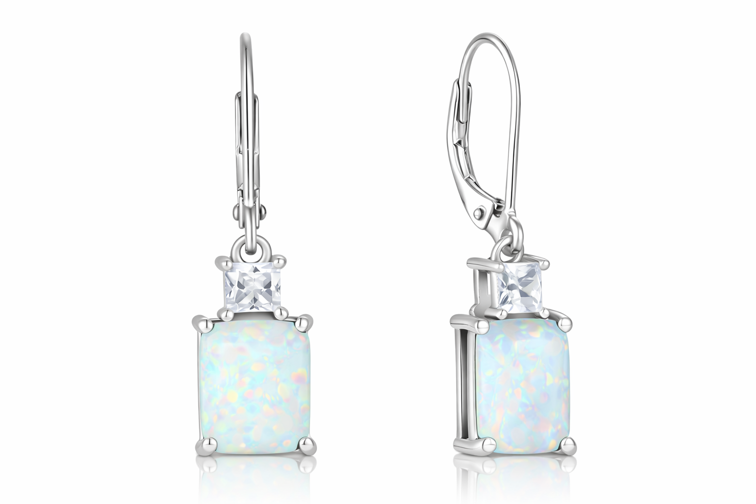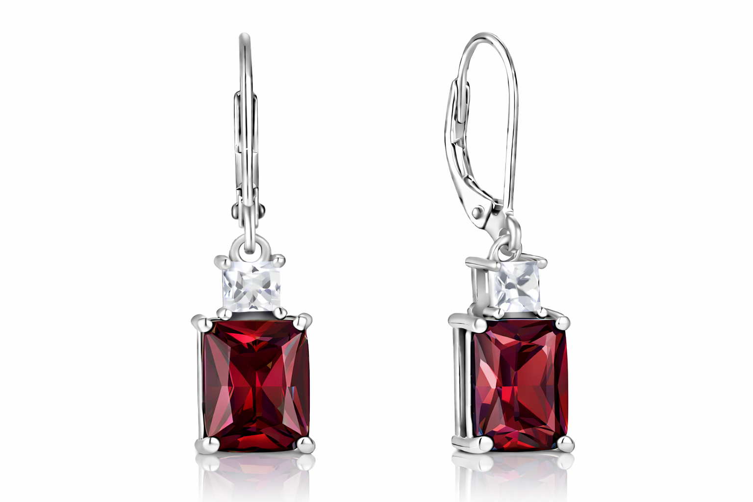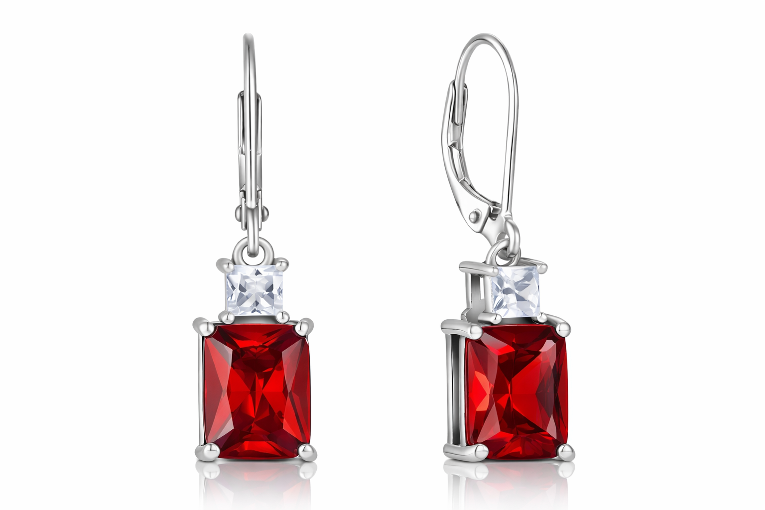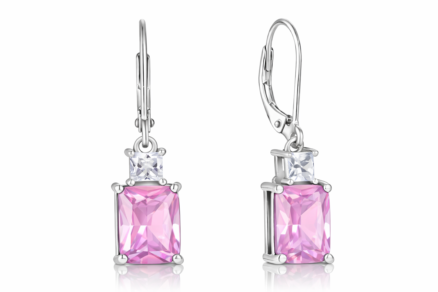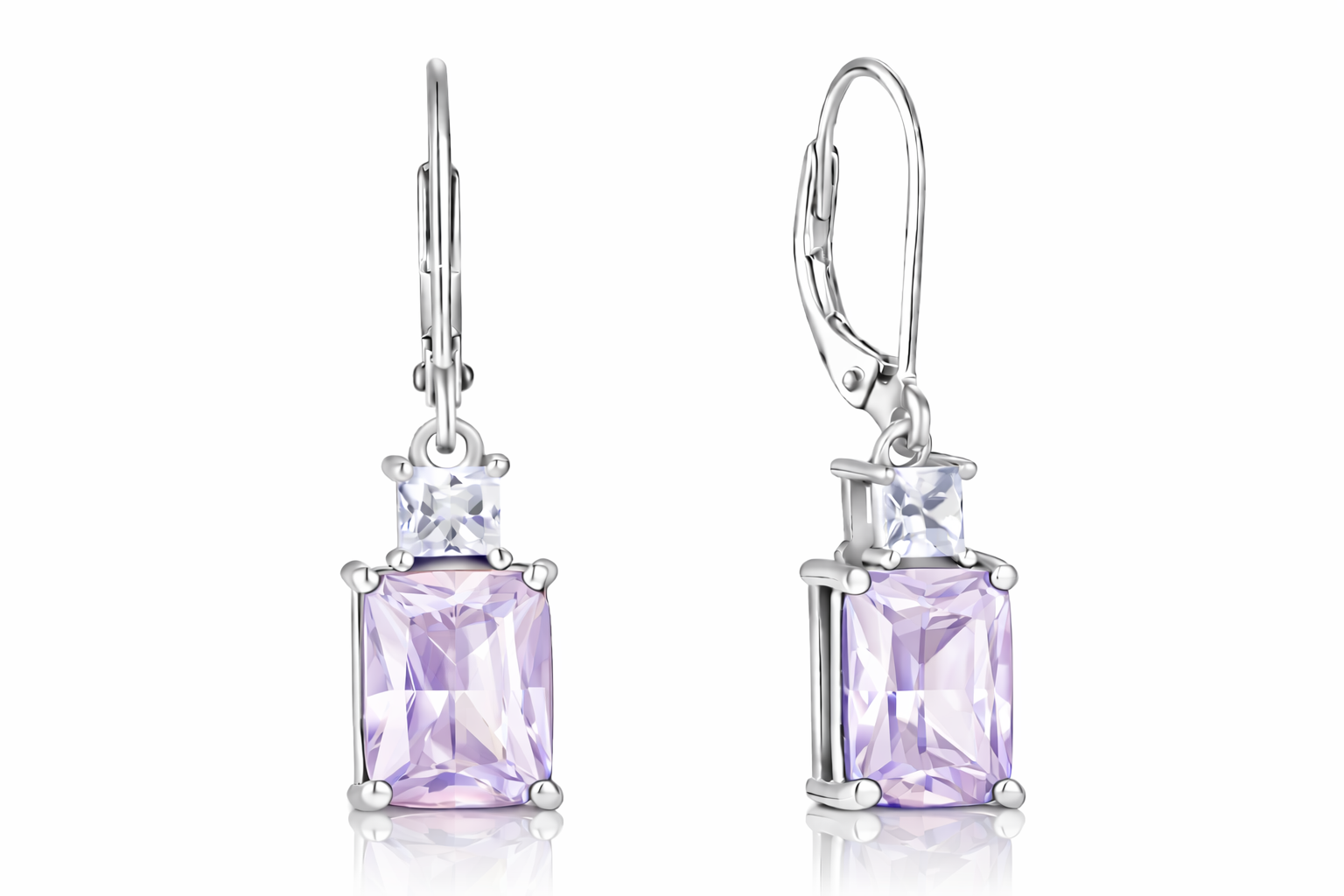 Sterling Silver Emerald Cut Drop Earrings with Cubic Zirconia,Nida Jewelers | DP002